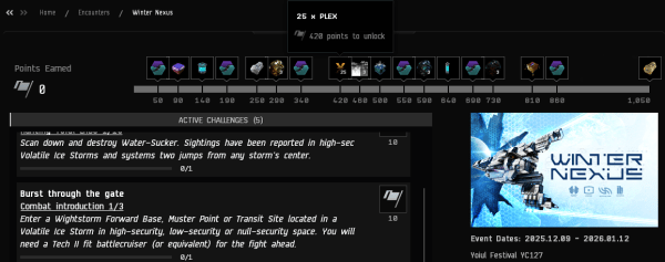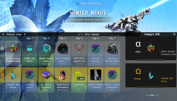The holidays have arrived in New Eden and volatile ice storms are now popping up in game as CCP launches the annual Winter Nexus event. The event was heralded a day early when CCP changed the background of the character select screen from a dark scene… we’re in space, it is almost always dark unless something is exploding… to the glaze of white of a volatile ice storm, something some of my fellow cave dwellers likened to being flash banged.