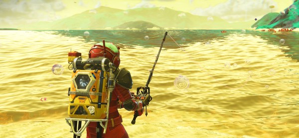 Fishing in a space suit, as one does in NMS